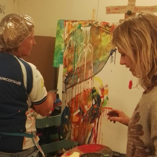 professionele begeleiding, werkruimte/schildersezels, verf en doek